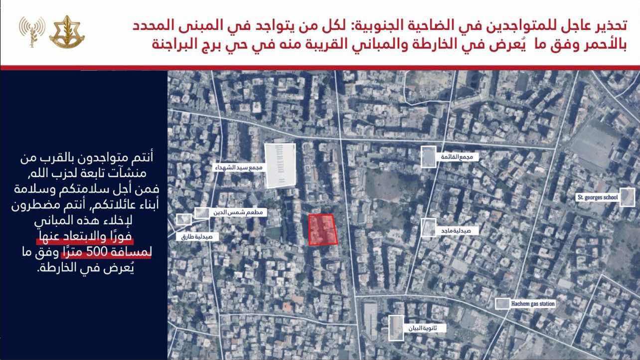 الصفحة الرئيسيةالحرب بيان المتحدث باسم العدو انذار عاجل إلى سكان الضاحية الجنوبية وتحديدًا المتواجدين في المباني المحددة في الخريطتيْن والواقعيْن في حي برج البراجنة bySamir deryan -الخميس, أكتوبر 03, 2024 0 Tags الحرب لبنان Lebanonne Facebook Twitter