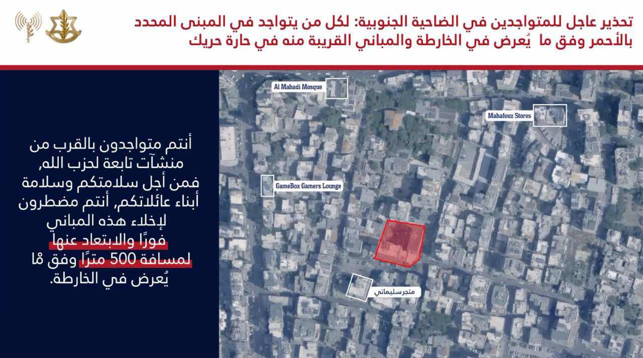 الصفحة الرئيسيةالحرب انذار عاجل إلى سكان الضاحية الجنوبية وتحديدًا المتواجدين في المبنى المحدد في الخريطة في حي حدث غرب والمباني المجاور bySamir deryan -الخميس, أكتوبر 03, 2024 0 Tags الحرب لبنان Lebanonne Facebook Twitter